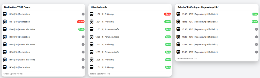 Das Timetable-Widget ist ein konfigurierbarer Micro-Service zur Anzeige von ÖPNV-Abfahrten. Die Daten werden live aus offiziellen Quellen geladen und aufbereitet.